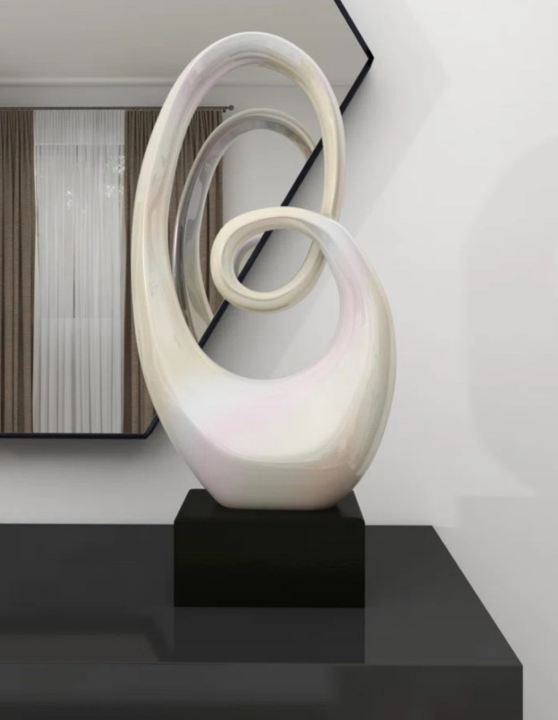 Add drama to any space with this elegant abstract sculpture — a shimmering silver swirl of polished ceramic resting on a black base. This item is not available for shipping. $55 value
