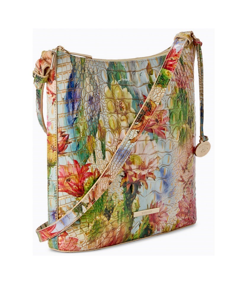 A burst of colorful florals makes this exclusive Brahmin leather handbag the star of any show. The Katie Crossbody is a zip-top style that tapers out slightly to create a sleek silhouette. Adjust the strap to fit your needs, and stay organized with multiple interior pockets and a key clip. This item it not available for shipping. $215 value