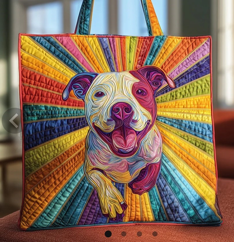 Pity the person who doesn’t love Pitties cause they’ll never know the joy of this terrific breed. You can show them what they’re missing with this beautiful quilted tote bag from Patchique! Lightweight, washable and a handy 14x15” size. This item is not available for shipping. $70 value