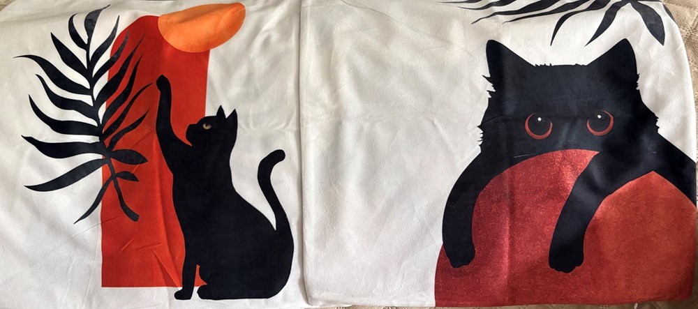 Two gorgeous black cats are doing their best to bring the spirit of Autumn into your home. This unique pair of 18x18” pillow covers are made of soft velour cotton with a contemporary design sure to brighten any room! $50 value