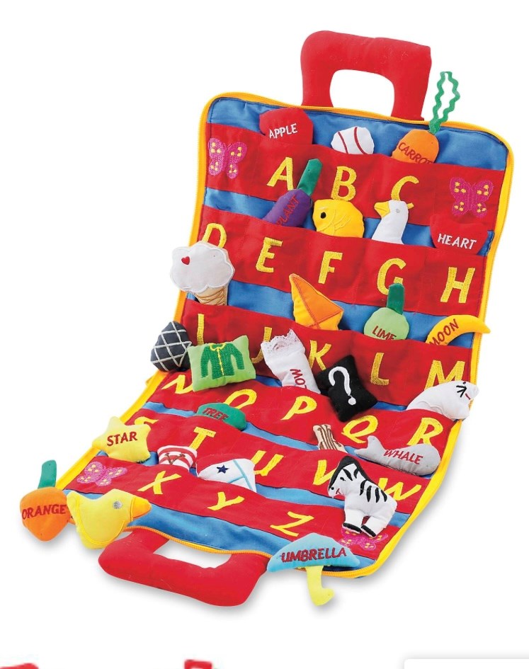 Learning the ABCs is take-along fun with 26 pockets filled with soft sculpture shapes, while the Bean Bag Toss fosters the budding athlete and the nifty digital camera is perfect for the future paparazzi. Shipping not available on this item. $40 value